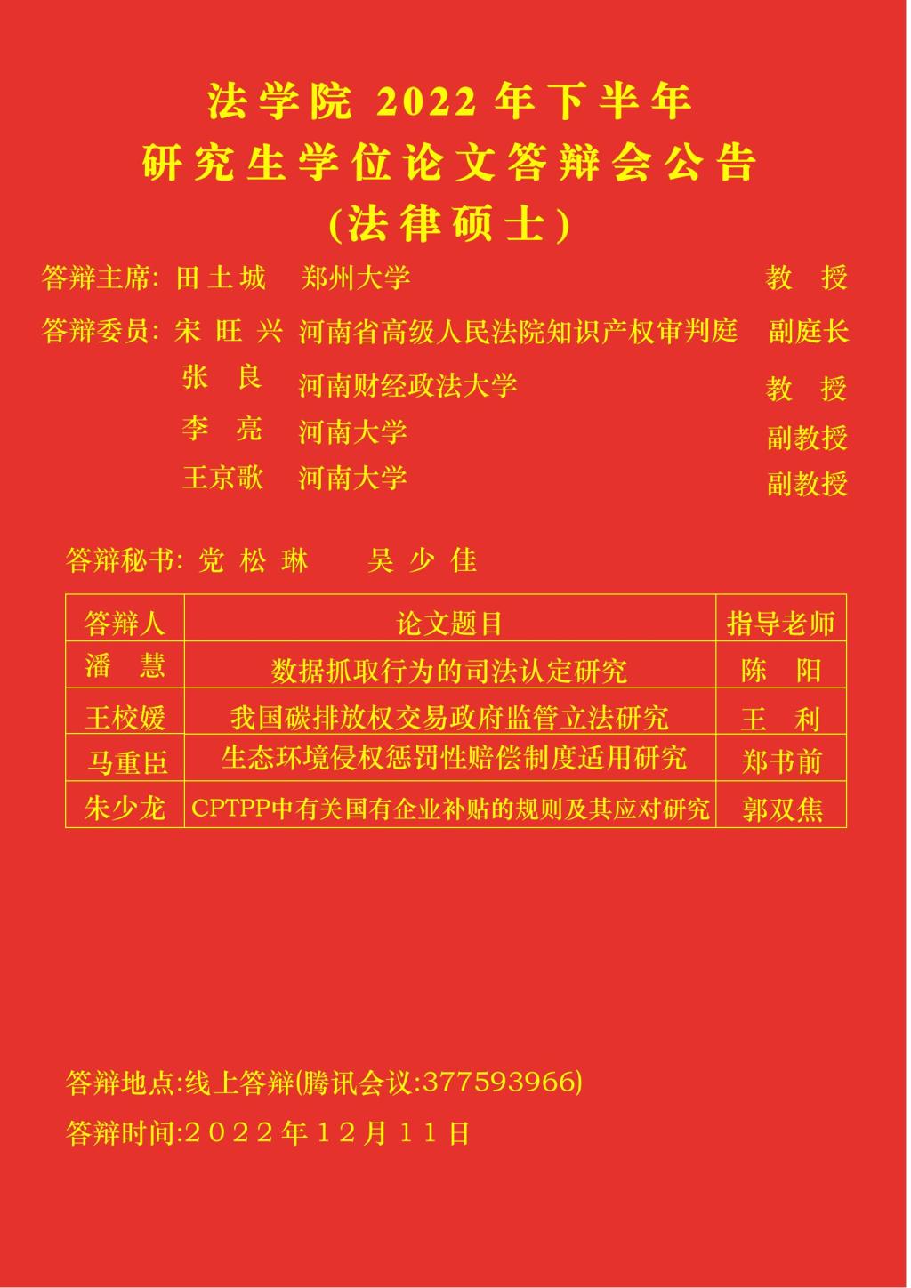 国产精品被❌❌❌2022年下半年研究生学位论文答辩会公告(法律硕士)