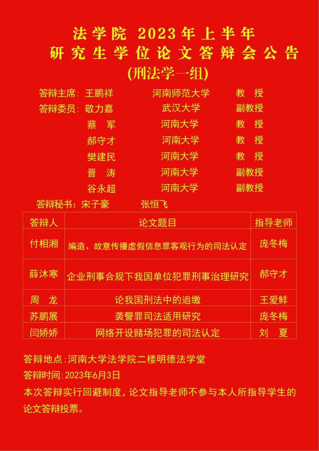 国产精品被❌❌❌2023年上半年研究生学位论文答辩会公告(刑法学一组)