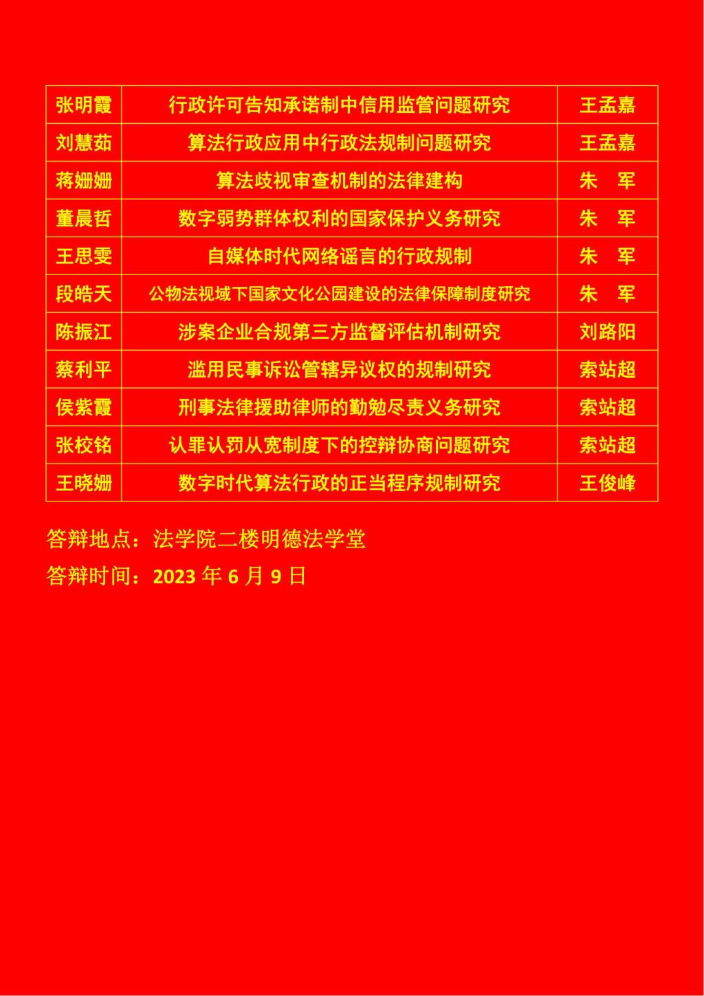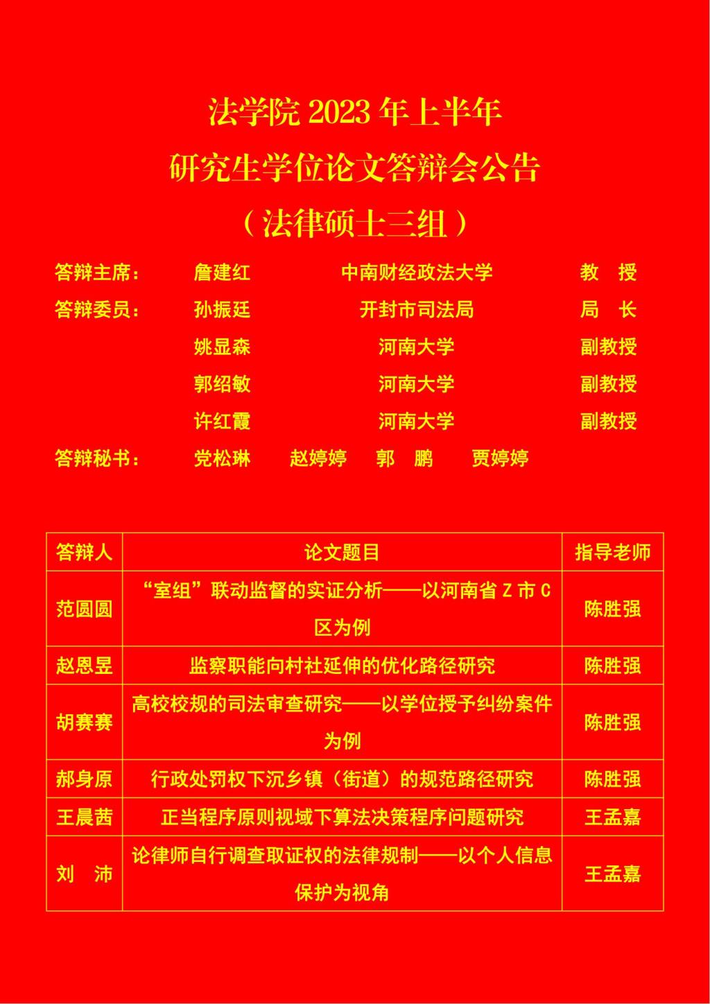 国产精品被❌❌❌2023年上半年研究生学位论文答辩公告(法律硕士三组)