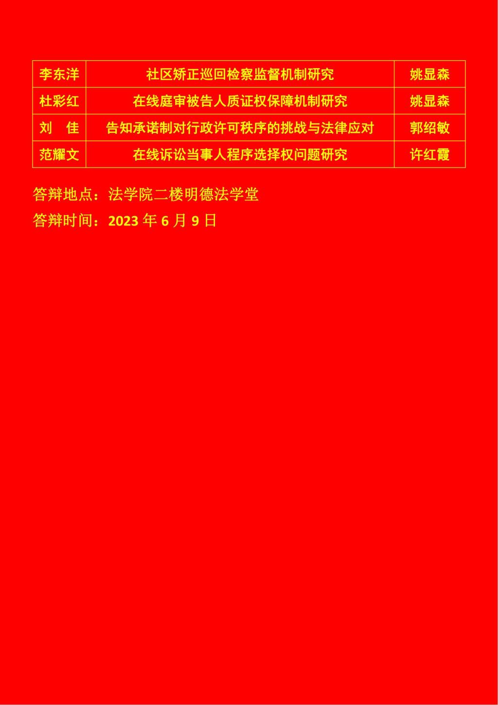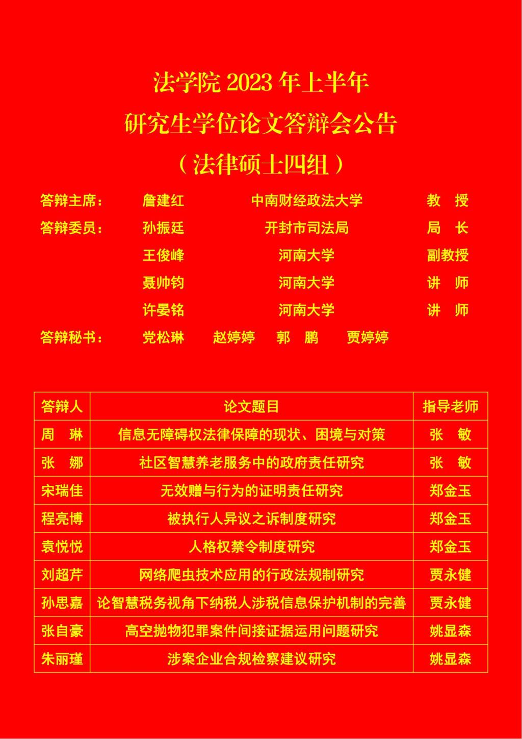 国产精品被❌❌❌2023年上半年研究生学位论文答辩公告(法律硕士四组)