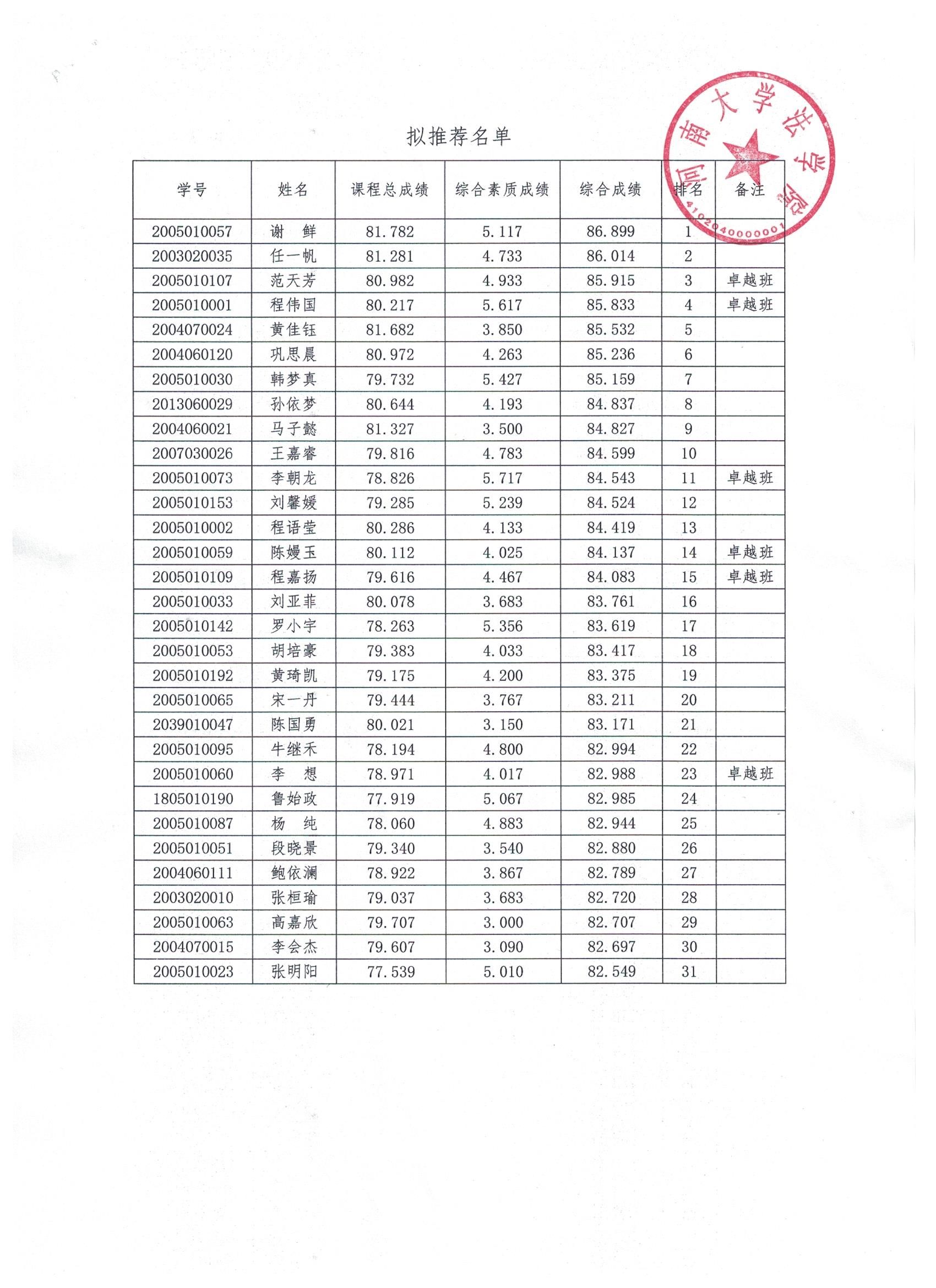 国产精品被❌❌❌2024届推荐优秀应届本科生免试攻读硕士学位研究生拟推荐名单公示