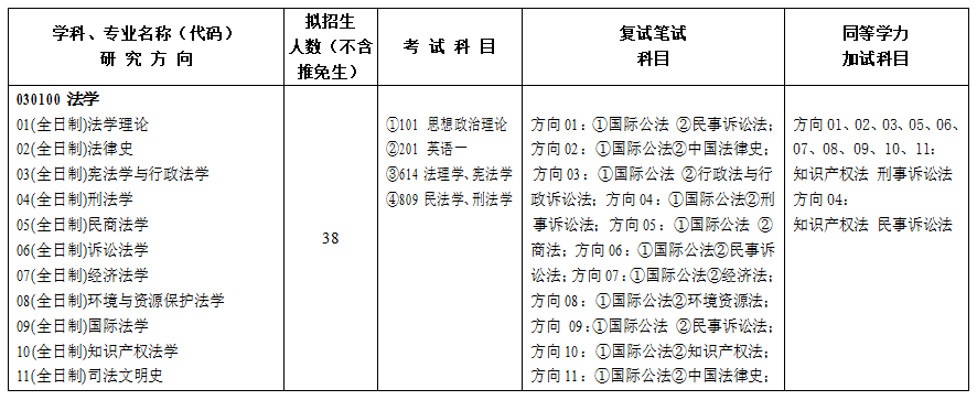 学术学位 | 法学 | 030100 | 政治≥46 英语≥46 | 专业课1≥90 专业课2≥90 | ≥365 |