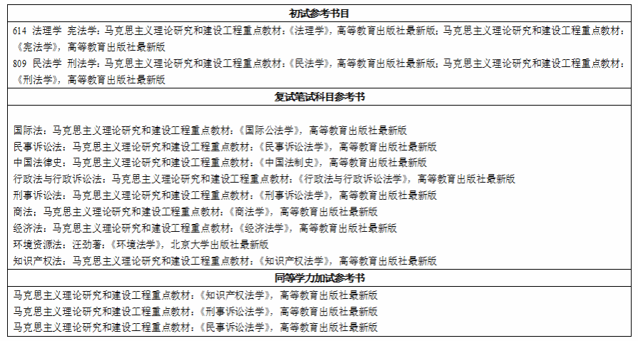 2. 法学一级学科硕士学位授权点招生考试参考书目