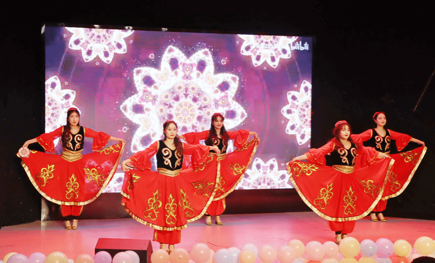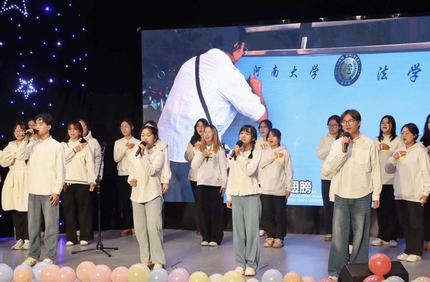 小品相声节目令人捧腹大笑,普法情景剧则以幽默风趣的形式引导同学们树立正确的金钱观与价值观,节目《八十一难》的别样西游,更是向同学们展示了与众不同的西游趣事。一支新疆舞蹈《手鼓舞》,来自新疆的同学们舞步激情四溢,明媚而自信,花一般绽放的裙摆舞出文化交融的盛况。国基律师事务所的胡大宽律师歌声高亢而嘹亮,一首《北京颂歌》唱出对伟大祖国的热爱与祝福。