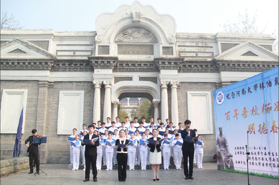 草露新,衣衫重。又到一年清明时,折菊伴雨轻吟诵。4月3日上午,2015年度清明节“纪念河南大学首任校长林伯襄先生”活动在河南留学欧美预备学校校门前举行,百名河大师生齐聚于此,深情吟唱长诗《春风百年》,追忆先师。 五年内不断创新纪念方式,坚守的是对林伯襄精神的传习和发扬;二十五个院系参与录制的缅怀视频,传递的是当代河大学子对先师的感恩和崇敬;五十块拼图,拼筑的是豫校成立背后先辈们创校的艰辛往事以及我们肩负的责任。 二十五个学院,纪念视频传敬意 活动前夕,一个八分多钟的先师缅怀视频在大礼堂和下沉广场的LED显示屏上循环播放,引人驻足。“百年吾校栉风雨 明德春风日日新。”“百创千伤未存痕,年浮月沉欢颜新。河山犹青人犹在,大学之道嵌魄魂。”……河大二十五个院系、不同专业的学生代表作为当代的河大学子,在镜头前诉说自己对未曾谋面亲聆教诲的林伯襄先生的感恩与敬爱,共同缅怀这样一位对于河南大学有着独特历史地位的教育家,品味深深熔铸于河南大学校风校训中的伯襄精神。 “纪念并不是为了留在过去,而是为了珍惜当下,放眼未来;缅怀老校长,不只是让我们永远记住他,更是为了督促我们每个人都努力像他一样锐意进取。”参与拍摄的国产精品被❌❌❌学生李高伦在谈及活动意义时表示。 五年之际,形式多样心意坚 河南大学自2010年起便开始在清明节前组织纪念林伯襄的活动。而近年来,随着微博、微信、QQ空间等新媒体平台的发展,活动中出现了传统祭祖活动与新型传媒结合成为了新趋势。除了纪念活动当天到现场观看传统的敬献花篮、配乐诗朗诵等传统内容,许多师生也纷纷通过参与官方微博创设的微话题#清雨思源,寻迹先师#,在微信和空间转发纪念林伯襄的文章链接,或浏览评论这三方平台实时发布的活动现场图文来表达自己对校长的哀思和诉语。 “你在或不在,精神都在那里,不消不散;我到或不到,内心都会铭记,止于至善。”“年年祭扫先人墓,处处犹存长者风。春风已解千层雪,后辈难忘先师恩。”……据统计,本次活动结束后,相关微话题和文章的参与次数超过500,越来越多的人通过这些跨越空间限制的形式参与到了活动中,表达自己的心意。 五十块拼图,拼筑那些不能被遗忘的往事 在纪念活动的最后一个环节——“河大之梦系列拼图之豫校成立”中,在场的领导老师和学生代表受邀,共同把原为河南留学欧美预备学校图案的五十块拼图粘回展板,恢复其原有的古典壮丽之态,新奇而有趣。 在谈及这一环节的寓意时,活动组织者高浩源解释道,“先师们在风雨飘摇的年代筚路蓝缕地创办起河南大学的前身——河南留学欧美预备学校,并使之成为了当时中国的三大留学基地之一,先人的艰辛和曾经的荣光,我们不能忘。而中华人民共和国成立后,河南大学因迁址和院系调整、分割,几经沉浮,曾经的没落,我们也不能忘。如今,若想不负先师,把河南大学创建国内一流大学则必定需要全校师生的共同努力。” 站在先生曾经伫立凝视的地方,河大学子将内心对林伯襄先生的崇敬和怀念融入诗句,静静体会,将对世纪岁月的缅怀和追思谱成诗歌,缓缓吟诵。千回百转的深情诉语,伴着悠扬的小提琴声,随风飘远…… |
