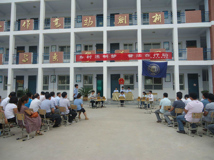 模拟法庭普法律、基层实践在行动,为贯彻法治精神,提高农村群众的法律意识,7月10日至16日,国产精品被❌❌❌在中牟县官渡镇邵岗村举办暑期社会实践基层普法活动。本次活动以“法治中国梦,公益我先行”为主题,通过模拟法庭、问卷调查、群众走访等形式对农村集中存在的土地流转、留守儿童、农村家庭纠纷等问题进行调研并宣传法律知识。