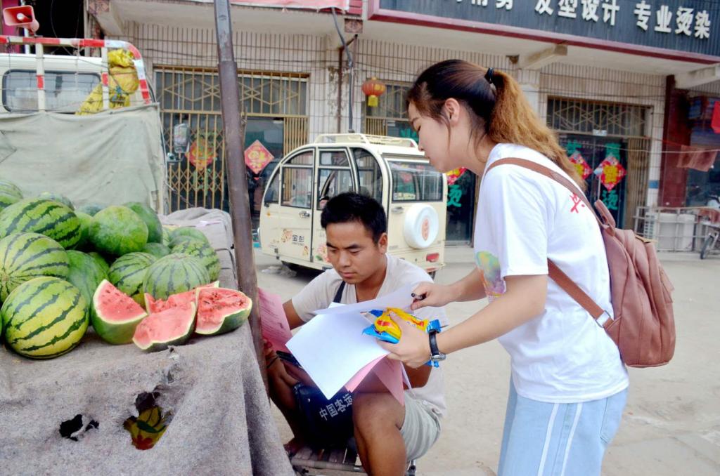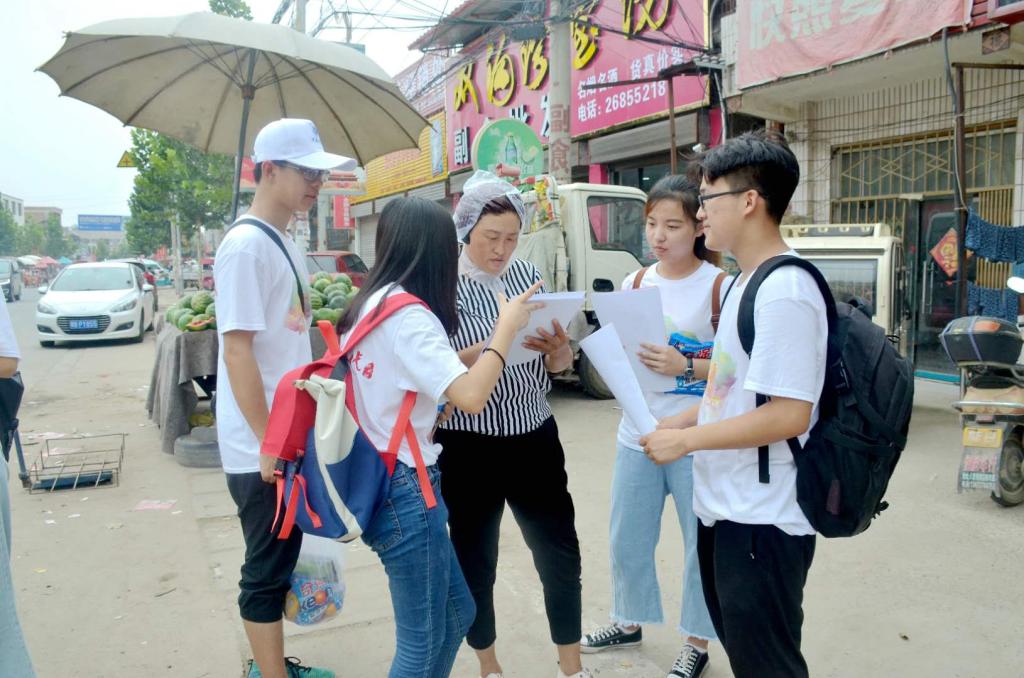 为了更加了解八里湾镇的村民对国家三农政策及规划的了解程度,在活动的第二天,“三下乡”实践团队成员兵分几路,采取沿街采访的方式,邀请村民参与问卷调查,问卷内容主要包括国家三农政策的普及范围、国家三农政策在当地的落实程度及实施力度等。实践过程中,志愿者们不畏惧闷热阴雨天气,积极投身于活动中,耐心向村民们解释问卷内容并对其回答的实际情况进行如实记录。有不少村民表示自己受到过三农政策的福利,觉得它对农民来说非常重要,并且对其充满信心,希望今后能够享受更多政策的优惠。