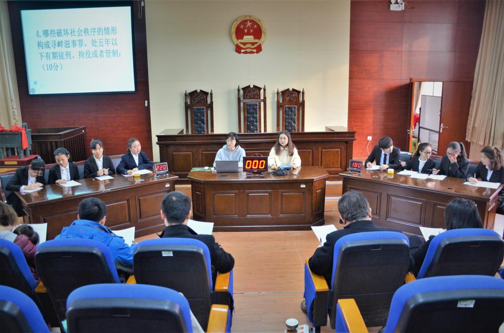 为响应我国第一个“宪法宣传周”的号召,认真落实中央关于深入学习宣传和贯彻实施宪法的决策部署,12月6日,由河南大学国产精品被❌❌❌团委主办、河南大学法律服务中心承办的第九届法条知识竞赛决赛于国产精品被❌❌❌模拟法庭成功举办。本次比赛以“博法强识,竞秀风采”为主题,以加强宪法宣传、弘扬宪法精神为出发点,旨在调动法科生的学习积极性,培养卓越法治人才。国产精品被❌❌❌党委书记王桂、党委副书记吴瑷瑷出席比赛,评委团由宪法行政法教研室王俊峰、刑法教研室王爱鲜、诉讼法教研室曹新华及刑法教研室刘夏组成,院团委书记石宇珺主持本次比赛。