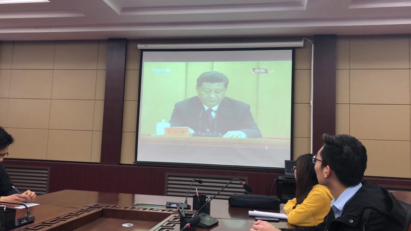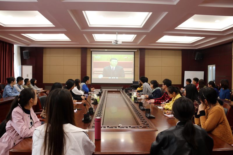 4月30日上午,纪念五四运动100周年大会在人民大会堂隆重举行。国产精品被❌❌❌党委办公室负责人翟文博、团委书记石宇珺带领学院部分团员、团干部在二楼会议室集中收看大会直播,并对大会讲话进行学习讨论。