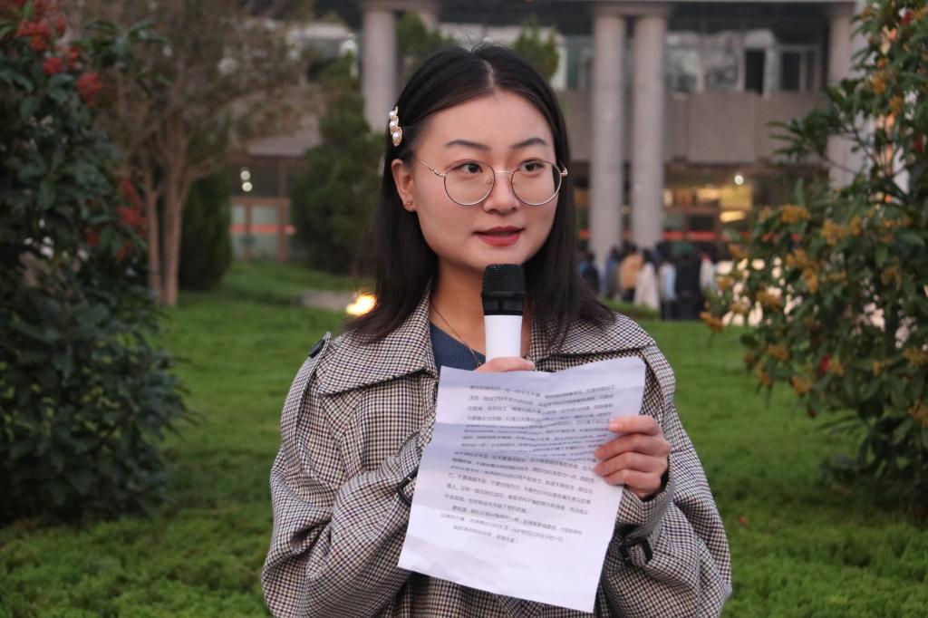 随后,由学生代表、2019级本科生黄予漫进行了题为“超越平凡”的国旗下演讲。一个又一个超越平凡、造就伟大的例子,让在场同学感触良多。