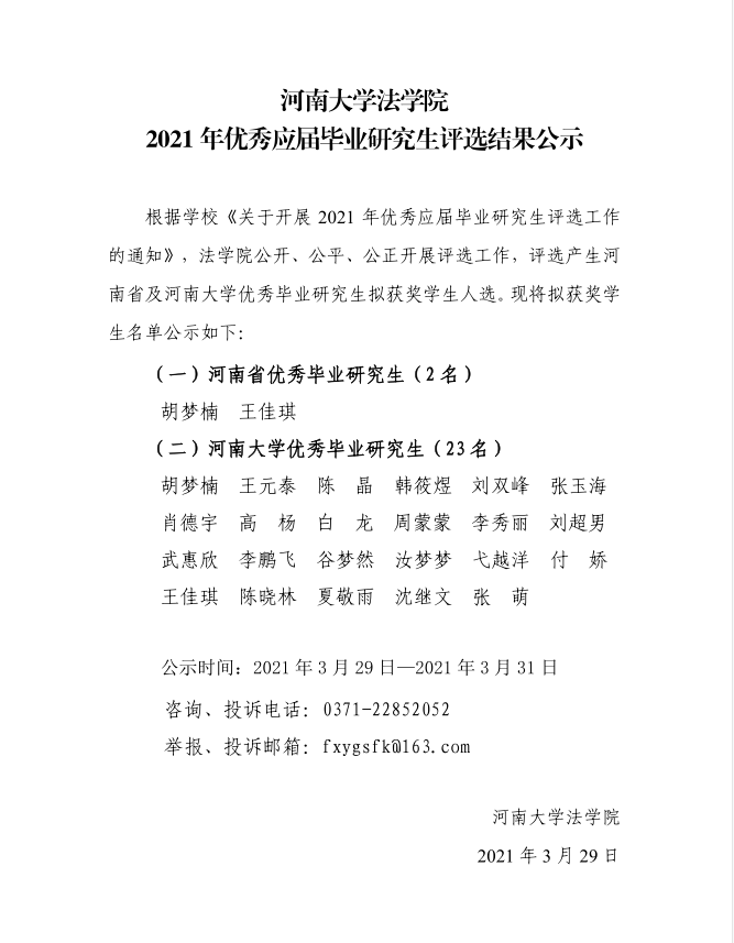 国产精品被❌❌❌2021年河南省优秀应届毕业生及河南大学优秀应届毕业生名单公示