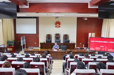 与此同时,在学院三楼模拟法庭,王利结合研究生教育教学特色,为2024级研究生深入讲解了学院培养方案构建、特色领域开设、专业课程设置、导师双选等系列问题。王利指出,研究生阶段同学们要更加明确自身目标方向,结合法学专业特点,在巩固提升专业知识的同时,做到洞悉实事、勇于探索、善于学习,提高自身综合能力,才能更好得走出校园,走向未来。