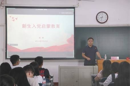 赵帅以“入党启蒙教育”为主题,围绕“我们为什么要重视优秀青年入党工作”“新时代青年应该是什么样”“大学生为什么要加入中国共产党”三个关键问题展开详细讲解。他结合共青团百年大事记等纪录片,生动讲述了党的发展史与奋斗史,从不同维度引导同学们端正入党动机、积极向党靠拢,增强“听党话、感党恩、跟党走”的认同感。