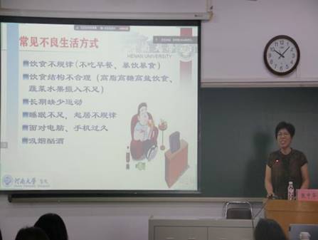 校医院预防保健科主任张中华受邀为同学们进行了健康教育讲座。张中华以幽默风趣的语言,通过互动交流、现场问答等方式,生动形象地讲解了生活中常见疾病的预防与治疗方式。随后,她介绍了不同类型传染病的校园防控方式,并着重介绍了艾滋病的传播途径、感染条件、检测方式、预防措施和救助治疗。她细心叮嘱同学们要注意个人卫生与健康,劳逸结合,适当运动,养成良好的生活习惯。