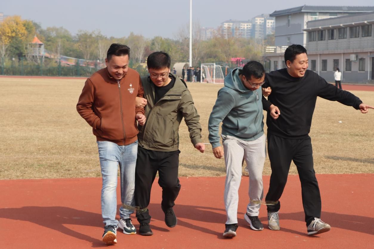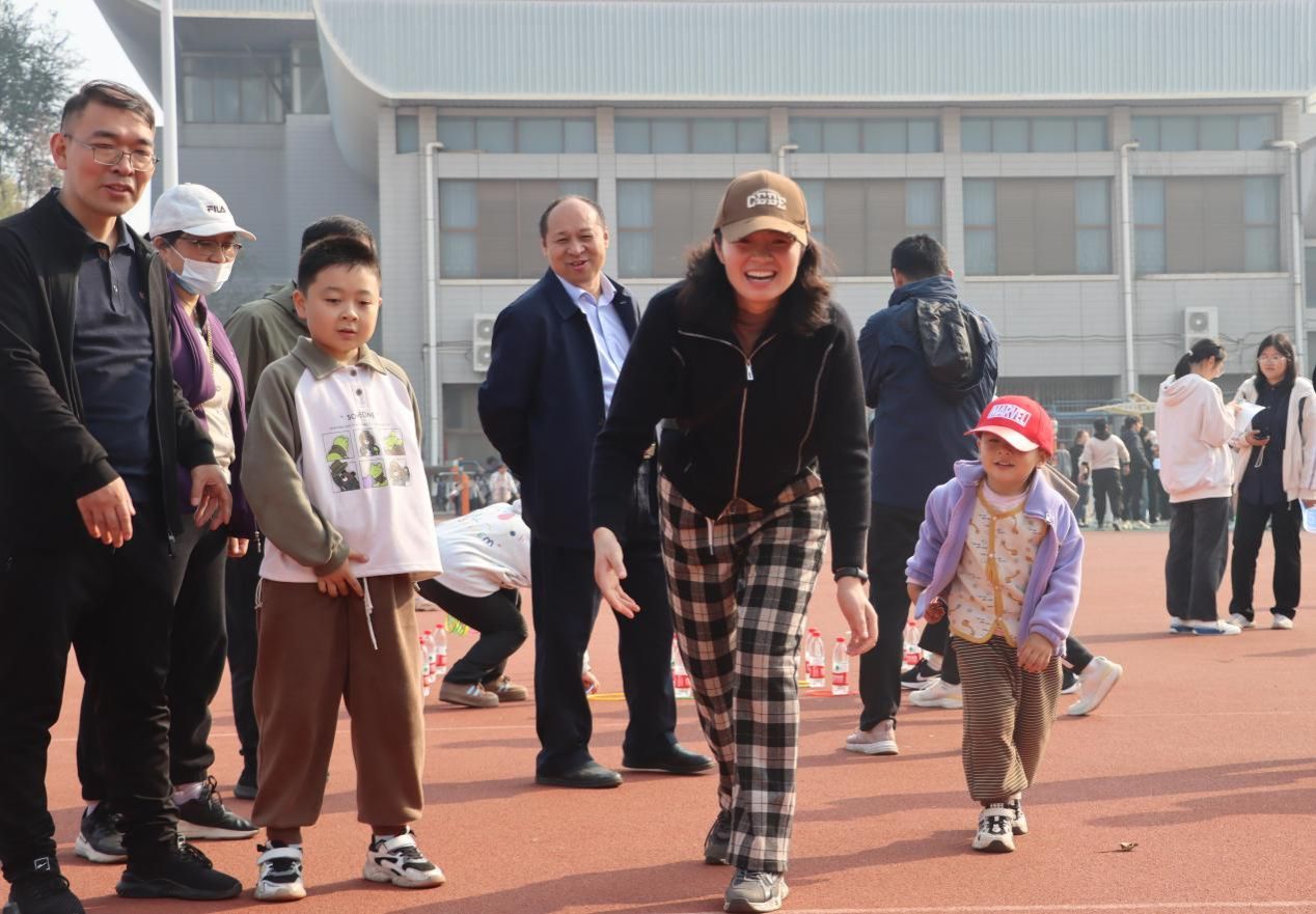 同学们在赛场上挥洒青春活力的同时,一场别开生面的教职工趣味比赛活动也在如火如荼地进行。两人三足比赛中,老师们节奏统一,奋勇争先,共同朝着一个终点前进,展现出高度的协作意识和竞技精神。在新式保龄球、托球往返跑、套圈圈等趣味项目中,教职工们互相鼓励,互授经验,在此次运动会中展现出不一样的教师风采。