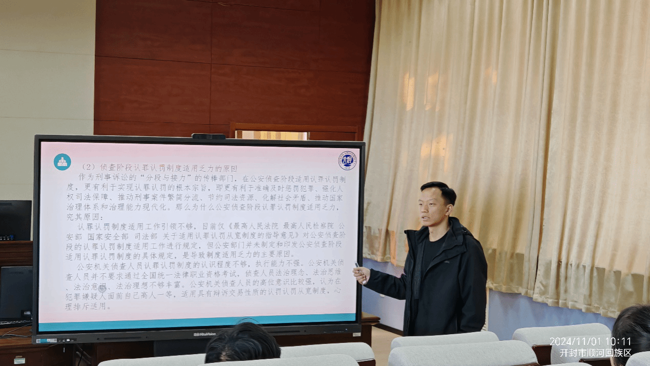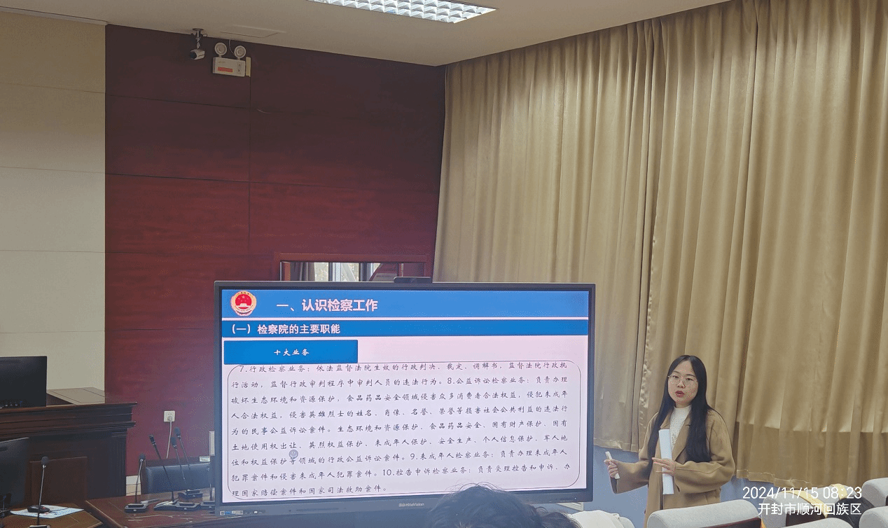 11月15日,开封市杞县人民检察院检察官助理冯朝阳,以“基层刑事检察案件办理经验分享”为主题,讲述了基层刑事检察工作的主要内容和实践经验。冯朝阳从三个方面进行了分享,一是深入解读检察工作的性质与职能;二是依托具体案例,详细介绍基层刑事检察工作内容及关键环节操作流程;三是针对故意伤害罪、诈骗罪等常见罪名,分享准确认定犯罪事实、适用法律以及化解社会矛盾的方法和技巧。四是强调在办理案件过程中,要坚持客观公正立场,避免主观臆断,确保司法公正。