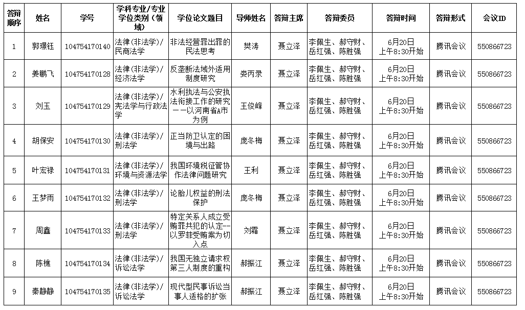 国产精品被❌❌❌2020年上半年研究生学位论文答辩会公告(法律非法学)