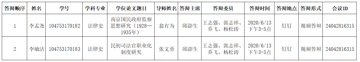 国产精品被❌❌❌2020年上半年研究生学位论文答辩会公告(法律史)