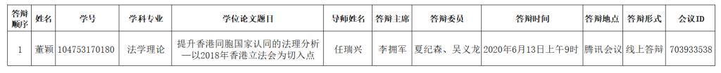 国产精品被❌❌❌2020年上半年研究生学位论文答辩会公告(法理学)