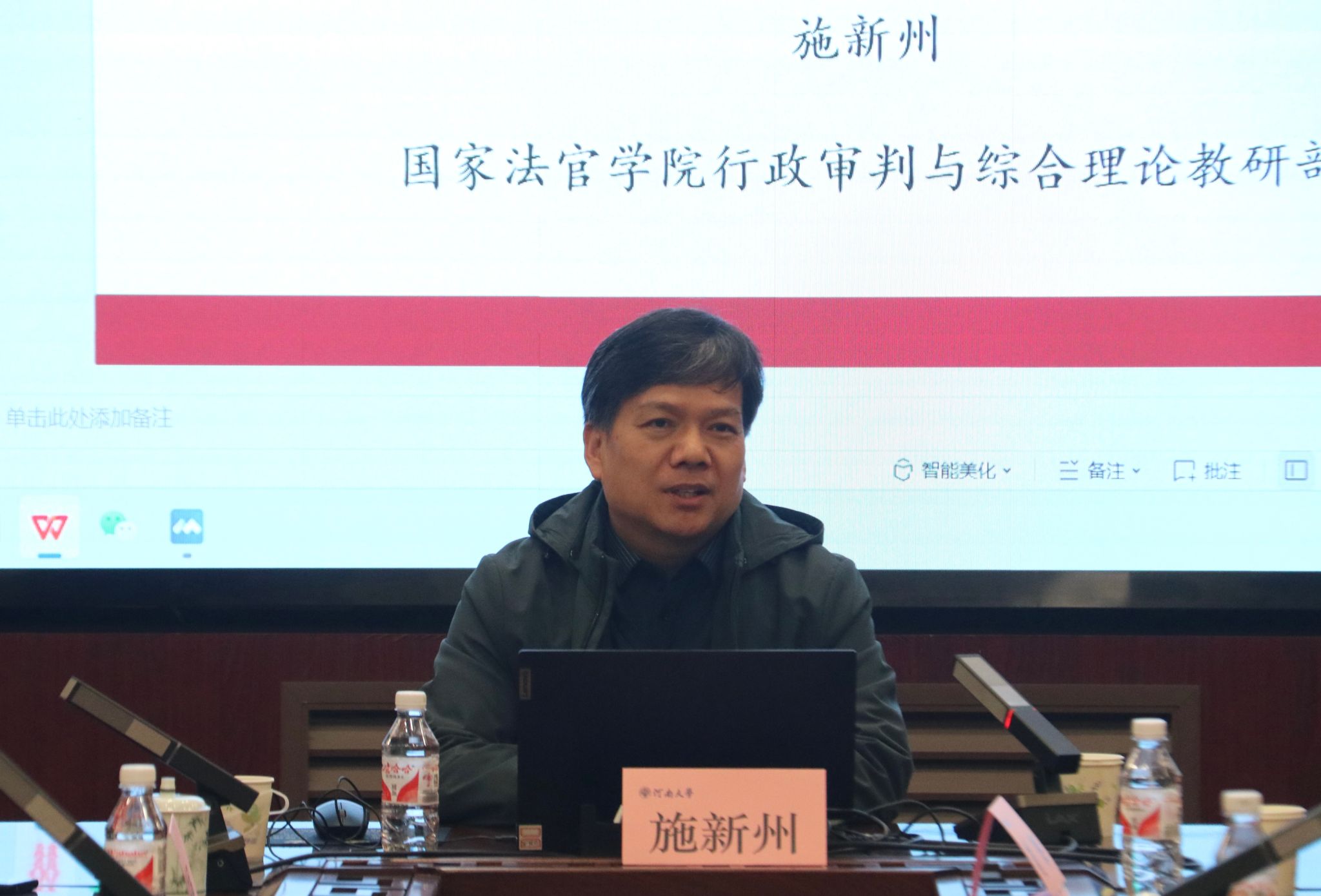 3月7日上午,国家法官学院施新州教授受邀做客河南大学国产精品被❌❌❌“辽源·明德法政大讲堂”,在第一会议室为我院师生作题为“全面从严治党与国家治理优势”的学术讲座。讲座由河南大学纪检监察学院副院长、副教授陈胜强主持,河南大学哲学与公共管理学院教授刘辉、河南大学国产精品被❌❌❌副教授贾永健担任与谈人,国产精品被❌❌❌学生500余人聆听了讲座。
