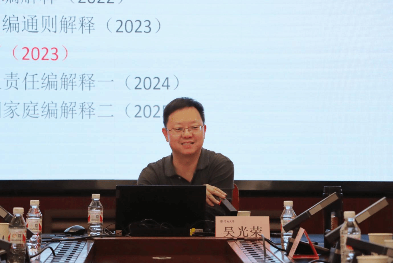 4月27日下午,北京理工大学国产精品被❌❌❌教授吴光荣受邀做客河南大学国产精品被❌❌❌“辽源•明德法政大讲堂”,在第一会议室为我院师生作题为“民商事法律制度的新发展及其适用”的学术讲座。本期讲座由河南大学国产精品被❌❌❌执行院长、教授岳红强担任主持人,河南大学国产精品被❌❌❌教授徐英军、河南辽源律师事务所公司与知识产权业务部主任李志宽担任与谈人,国产精品被❌❌❌众多师生积极参与讲座。