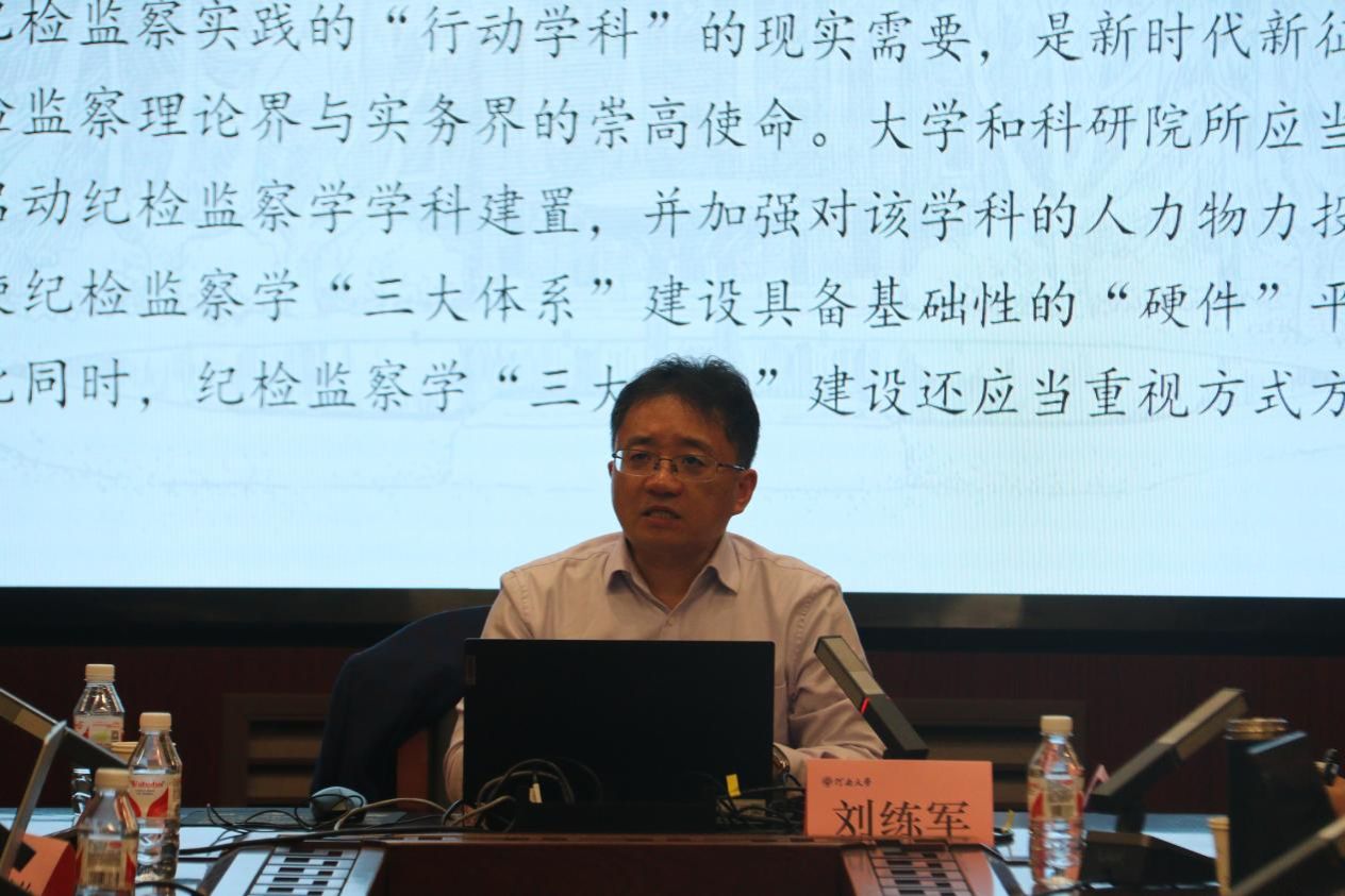 2024年11月11日晚,东南大学国产精品被❌❌❌教授、博士生导师、东南大学党内法规研究中心主任刘练军教授受邀做客河南大学国产精品被❌❌❌,在第一会议室为我院师生作题为“纪检监察学‘三大体系’初论”的学术讲座。本期讲座由河南大学纪检监察学院副院长、副教授陈胜强主持,河南工业大学国产精品被❌❌❌副教授陈辉、河南大学国产精品被❌❌❌教师聂帅钧担任与谈人,国产精品被❌❌❌学生积极参与讲座。