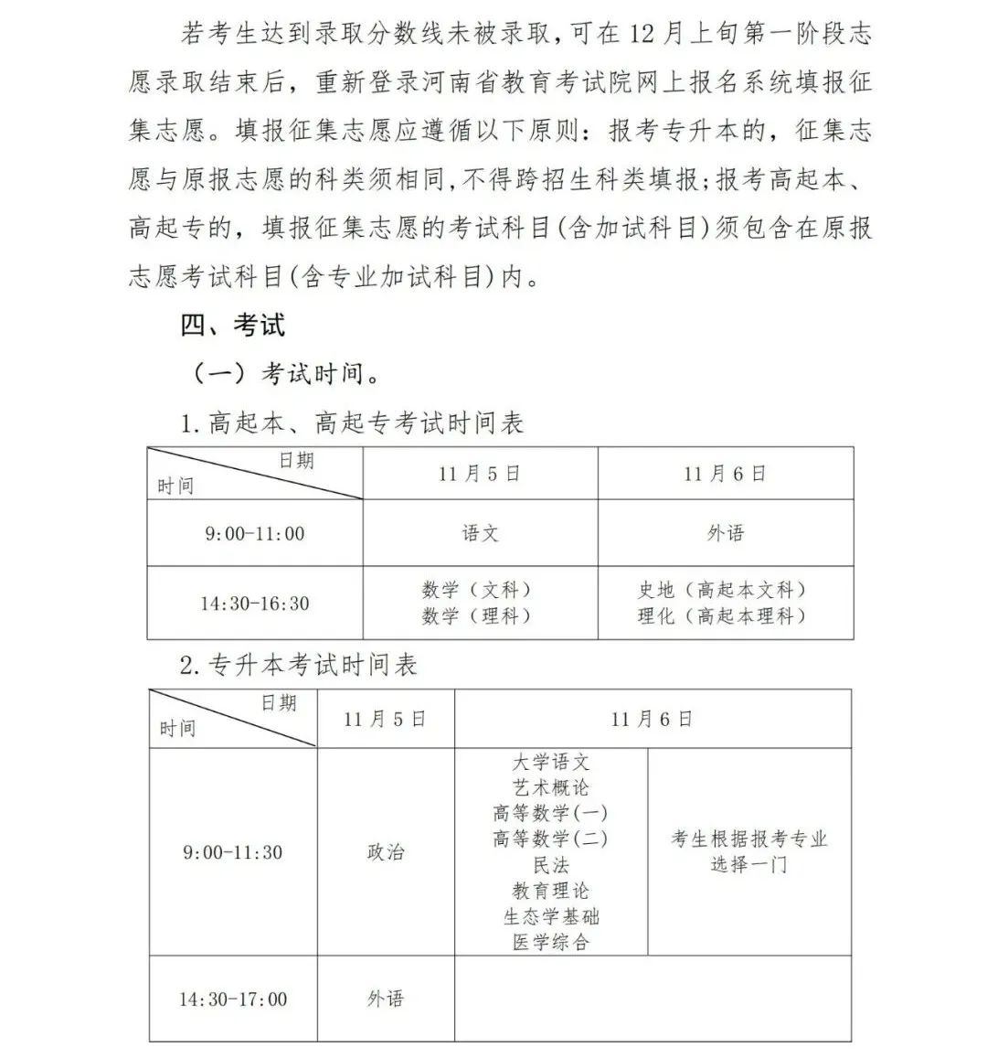 河南省2022年成人高校招生工作规定(附件 1)如下考试时间、科目等详细要求在这里(点击图片看大图)↓↓↓
