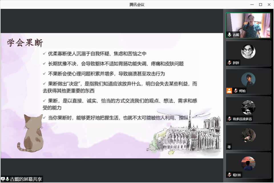 学院党委办公室副主任翟文博为2021级新生讲解党的基本知识和入党流程,开展新生入党动员。古戴老师进行了心理健康教育,对大学生容易产生的心理问题进行介绍,并给出了一系列心理健康问题的解决方法。古戴在线上与同学们亲切交流,同学们也积极互动,气氛轻松活跃。