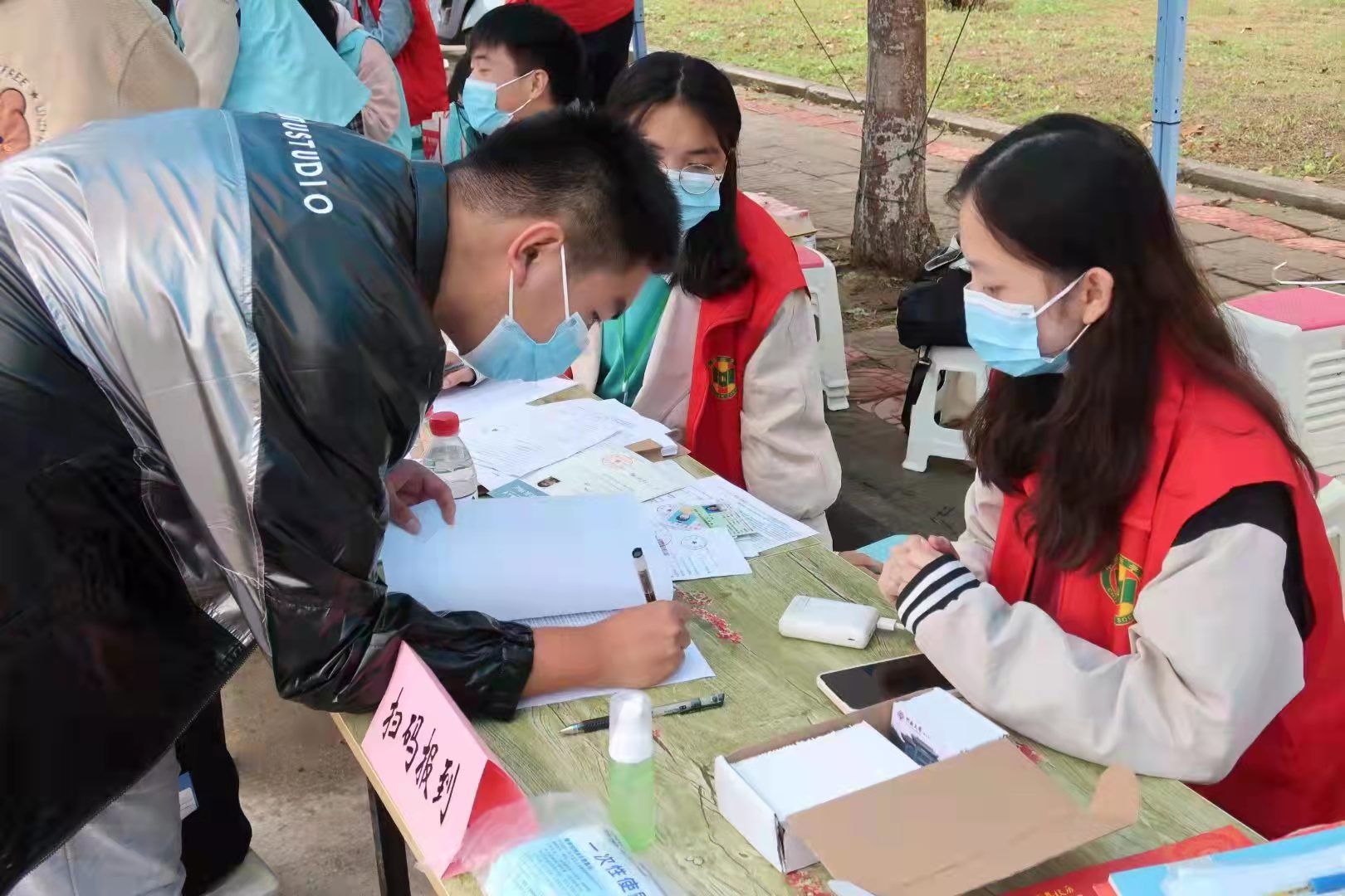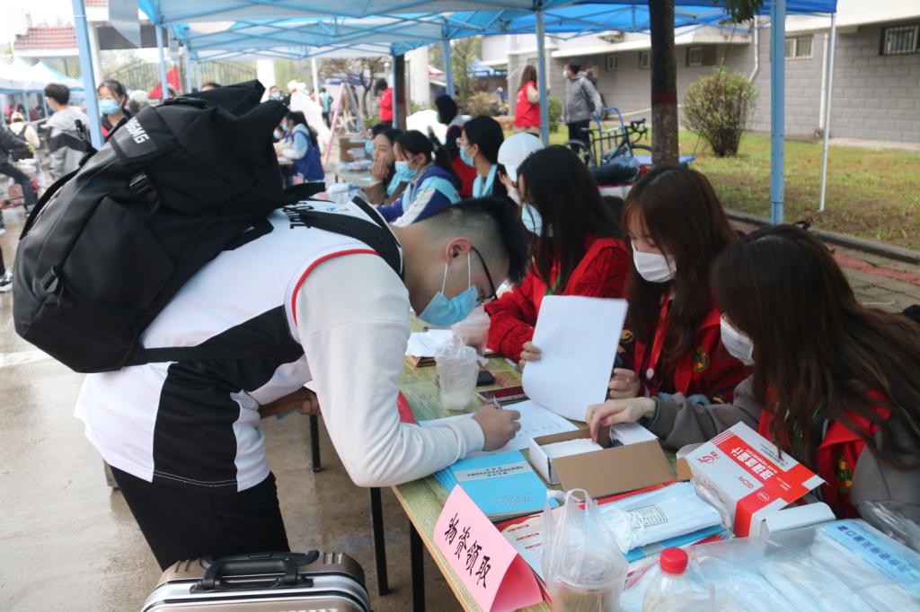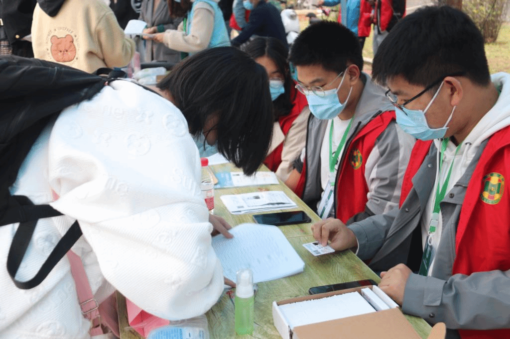 仁和公寓迎新服务站点的志愿者们则依次为新生进行身份核验、绿色通道手续办理、今日校园扫码签到、一卡通等物品发放的工作。值得一提的是,新生在办理报到时,还会领取一份独特的“新生礼包”,包括口罩、体温计、学生手册等基本资料。