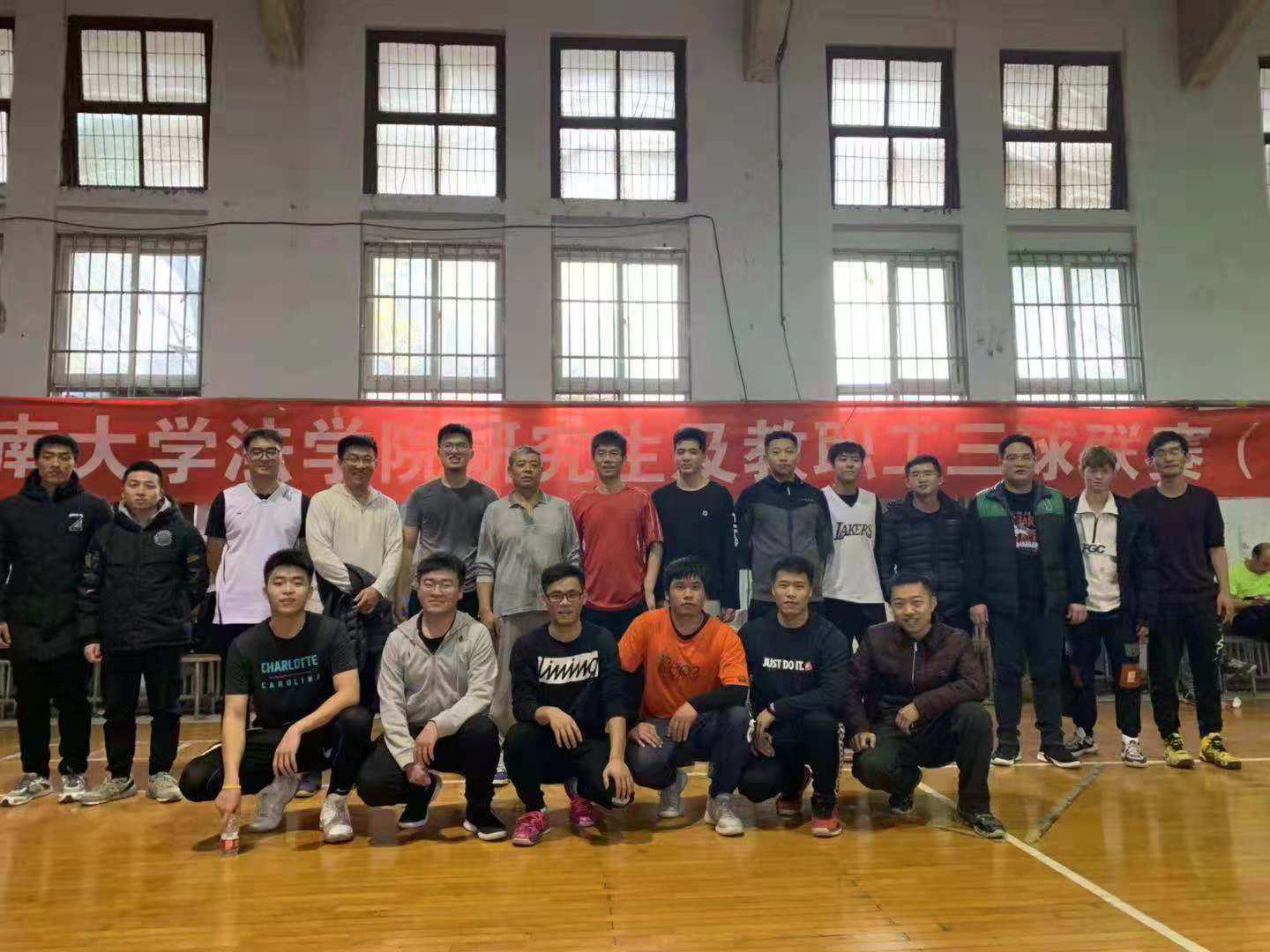 下午17点,2018年河南大学国产精品被❌❌❌研究生&教职工“三球联赛”在热烈而友好的气氛中圆满结束,参与活动的师生进行了合影留念。本此活动由河南大学国产精品被❌❌❌研究生与科研管理办公室和团委共同主办,国产精品被❌❌❌研究生会承办,活动旨在加强校园文化建设,丰富师生课余文化生活,促进师生之间以及各年级同学之间的交流,增进师生之间、各年级同学以及同年级同学之间的感情,增强集体的凝聚力,培养同学们积极向上、顽强拼搏的优秀品质和河大法律人“青春健康,正气向上”的独特气质,以促进同学们的全面发展。