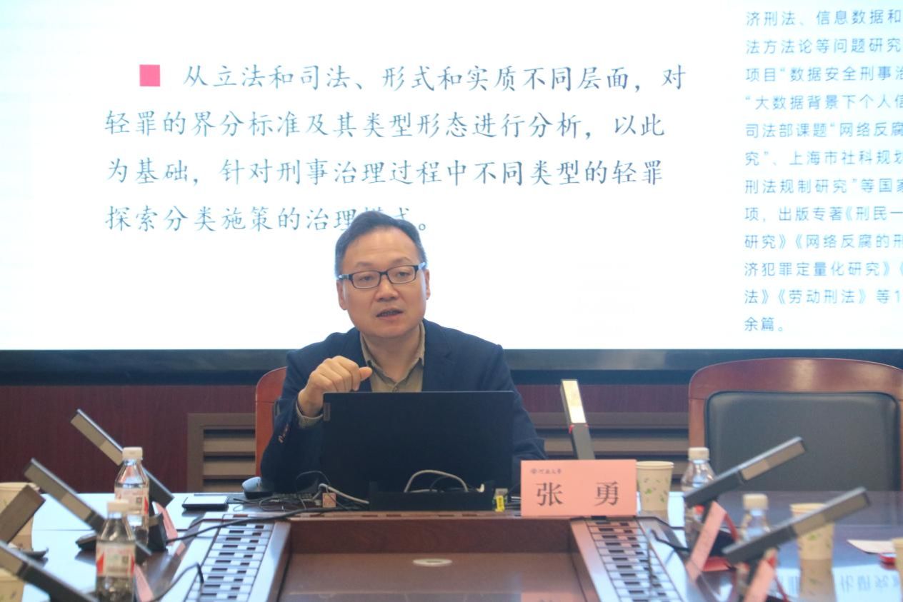 11月24日上午,华东政法大学刑事国产精品被❌❌❌教授、博士生导师、华东政法大学经济犯罪与刑民一体化研究所所长张勇受邀做客河南大学国产精品被❌❌❌“法学前沿大讲堂”,在第一会议室为我院师生作题为“轻罪的界定标准与治理模式”的学术讲座。本期讲座由国产精品被❌❌❌副院长刘夏副教授主持,国产精品被❌❌❌庞冬梅教授、林需需博士和华东理工大学李雪健博士担任与谈人,众多学生积极参与讲座。