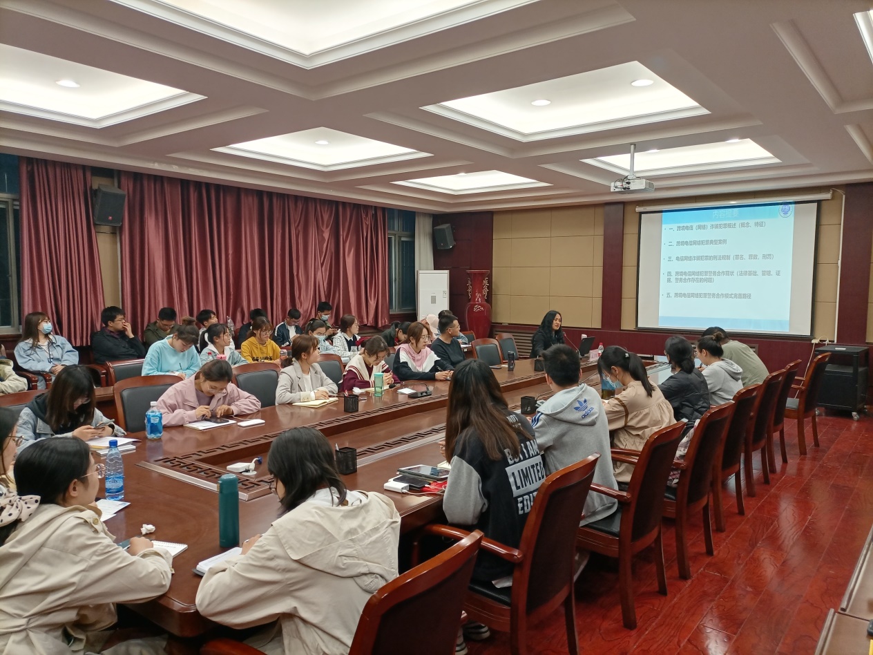 4月16日晚7点,河南大学犯罪控制与刑事政策研究所第六期“科研机构育人计划”讲座在国产精品被❌❌❌第一会议室举行。河南省特聘教授、河南大学黄河学者庞冬梅教授做题为“跨境电信(网络)诈骗犯罪及国际警务合作问题”的学术讲座。讲座由河南大学犯罪控制与刑事政策研究所刘夏副教授主持,近百名同学参加。