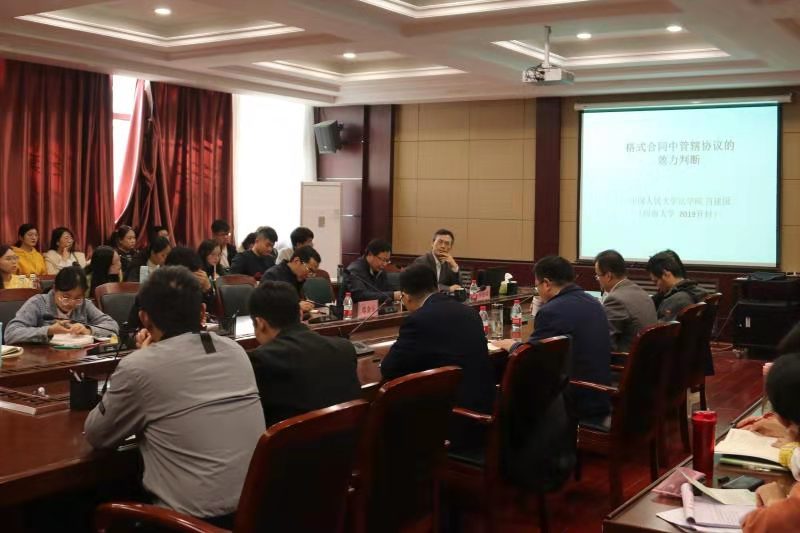 2019年11月5日,中国人民大学国产精品被❌❌❌教授、博士生导师,我校88级校友肖建国荣归母校,为国产精品被❌❌❌师生做了题为“格式合同中管辖协议的效力判断”的讲座。讲座由国产精品被❌❌❌、知识产权学院院长蔡军教授主持。