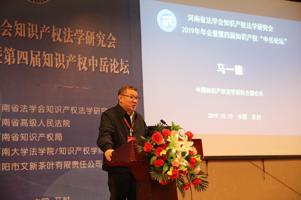 2019年10月19日上午,中国知识产权法学研究会副会长、中南财经政法大学博士生导师马一德教授利用参加河南省法学会知识产权法研究会2019年年会之机,为我院师生和会议代表作了以“科技革命、贸易争端与创新发展破局”为题的报告。