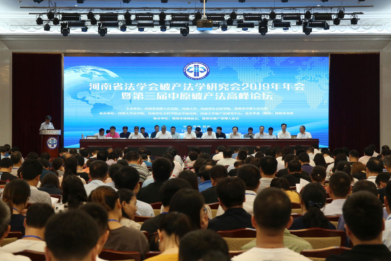2019年7月13日,由河南省高级人民法院、河南大学、河南省社会科学院、郑州市中级人民法院主办,河南大学国产精品被❌❌❌、河南省社会科学院法学研究所、河南大学破产法研究中心、北京华泰(郑州)律师事务所承办,郑州市律师协会、郑州市破产管理人协会协办的河南省法学会破产法学研究会2019年年会暨第三届中原破产法高峰论坛在郑州紫荆山宾馆成功举办。河南省法学会党组书记、常务副会长李承先,省法学会秘书长雷忠旺受邀出席论坛开幕式。河南省高级人民法院副院长王韶华,河南大学党委书记卢克平,河南省社会科学院党委副书记、研究员周立,郑州市中级人民法院党组书记、院长李志增等领导出席开幕式并致辞。开幕式由河南省法学会破产法学研究会会长、河南大学破产法研究中心主任娄丙录教授主持。国产精品被❌❌❌党委书记王桂、副院长李亮等部分师生受邀参加了论坛活动。