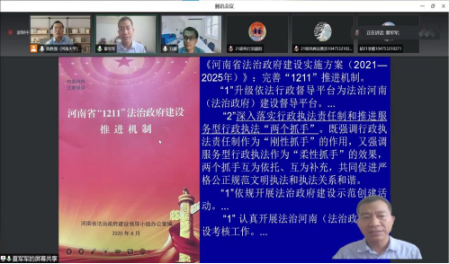 6月11日下午,河南省司法厅依法行政指导处夏新军副处长应邀在线为我院师生作题为“河南行政执法创新与实践”的实务课程讲座,讲座由《行政法实训与实践》任课教师陈胜强副教授主持。