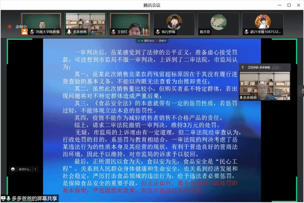4月12日下午,河南省市场监督管理局法规处向甄副处长应邀为我院师生开展《市场监管行政处罚的理论与实践》“云课堂”讲座,讲座由《行政法实训与实践》任课教师陈胜强副教授主持。