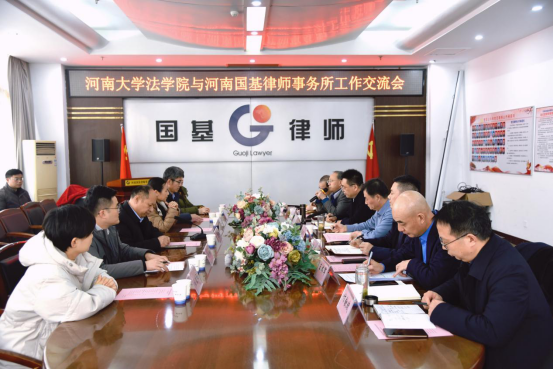 为加强学院与国基律师事务所交流合作,促进校企合作走深走实,12月18日下午,党委书记祝晓路一行六人赴河南国基律师事务所开展交流座谈。国基所主任李晴川、高级合伙人副主任童靖、高级合伙人郑州航空港区业务团队负责人王术军、金融法律事务一部主任张长贵、刑事法律事务二部主任付钦斌、知识产权法律事务部主任陈奎参加此次交流活动。座谈由国基所高级合伙人副主任魏杭周主持。