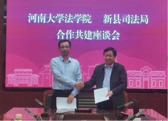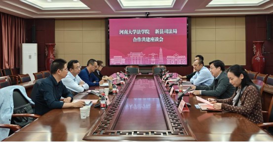 为贯彻落实《关于加强新时代法学教育和法学理论研究的意见》,进一步推动与司法行政部门的双向交流合作,联合培养卓越法治人才,10月25日下午,河南大学国产精品被❌❌❌与新县司法局在国产精品被❌❌❌召开合作共建座谈会。新县司法局党组书记、局长夏雨一行五人,我院党委书记祝晓路、院长蔡军、副院长吴瑷瑷出席座谈会。座谈会由我院副院长刘夏主持。