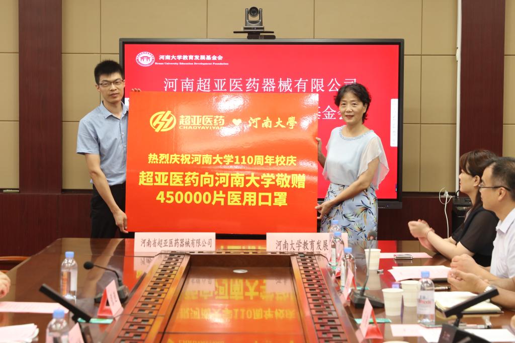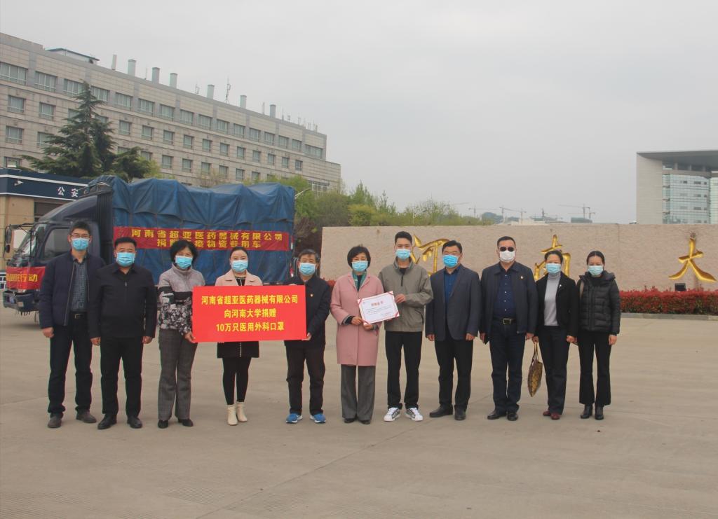 十、河南省超亚医药器械有限公司向河南大学捐赠45万只医用口罩