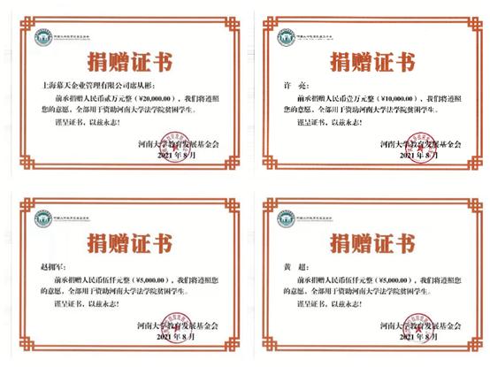 8月10日许亮、赵拥军、黄超和上海幕天企业管理有限公司席从彬向河南大学教育与发展基金会捐赠4万元,专项资助国产精品被❌❌❌家庭困难学生。